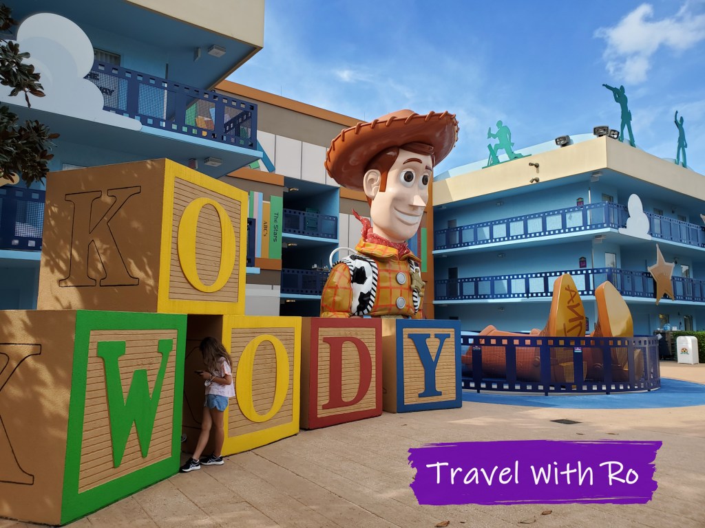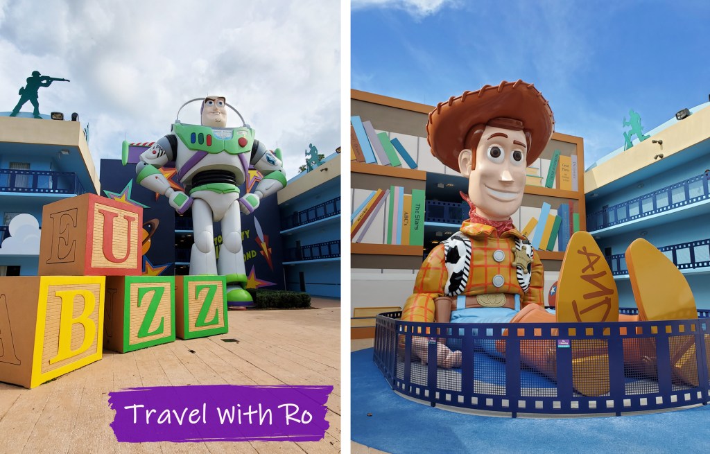 I mean, really – even sitting down Woody is taller than the three-story building behind him. And since each section of the hotel is decorated after a different movie, there’s a lot to explore. When we stay at a place like this, the kids love going from statue to statue and taking photos of everything. It’s part of the experience.