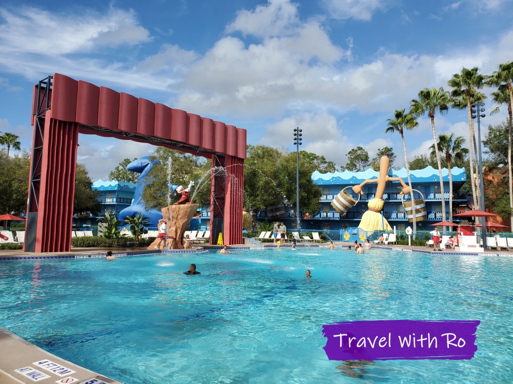 Disney hotels usually have fun pools and All Stars Movies was no exception. The main pool is a fairly standard pool, but the decorations make it stand out. There is a lot of lounge space around the pool too, and a pool bar nearby.